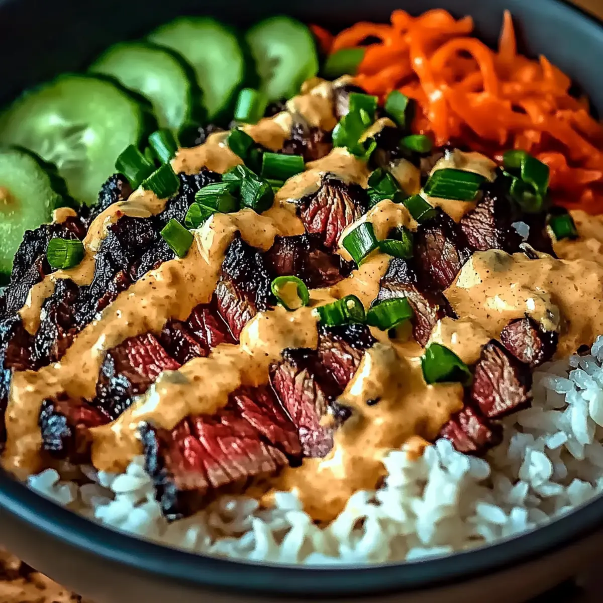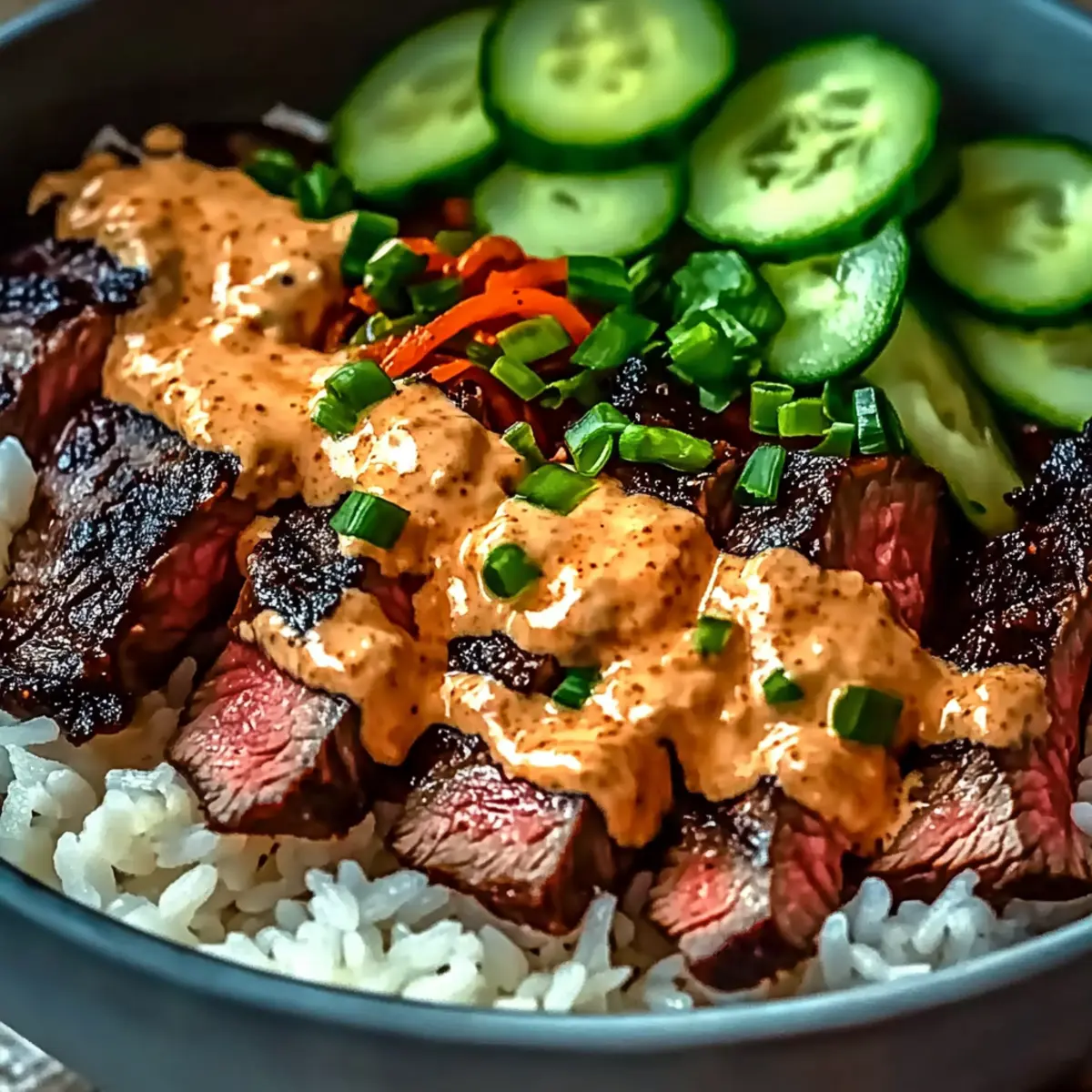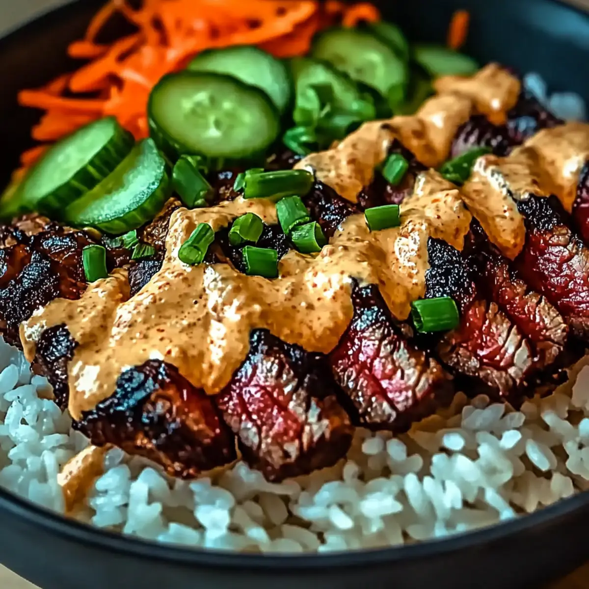 BBQ Steak Rice Bowls with Spicy Cream Sauce for Flavor Lovers