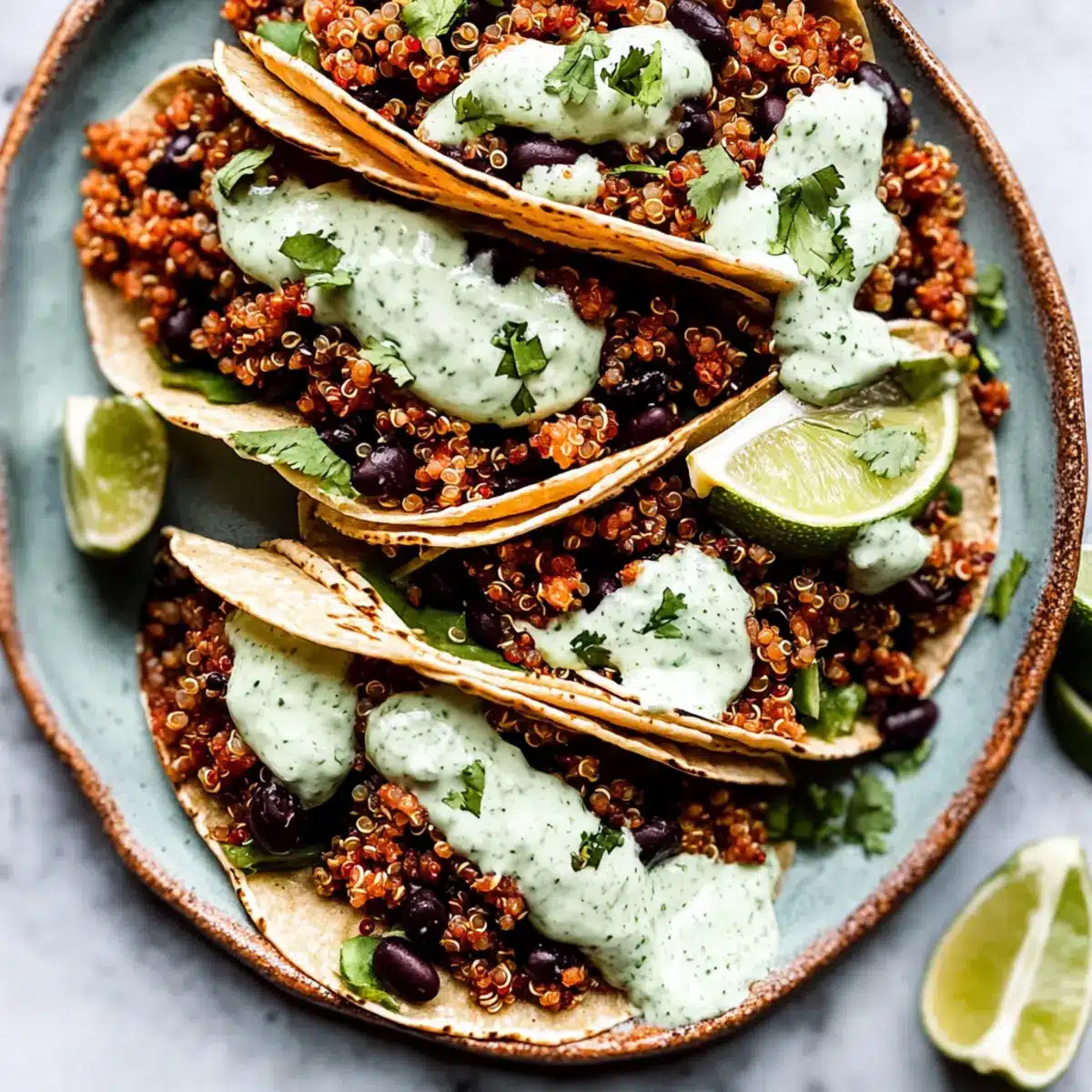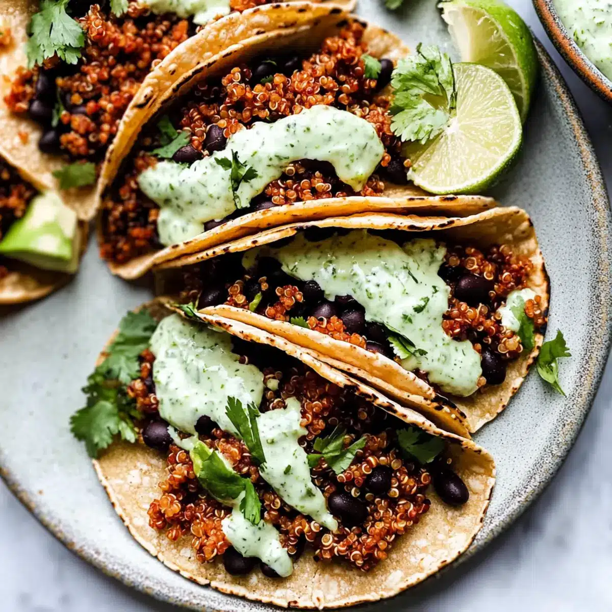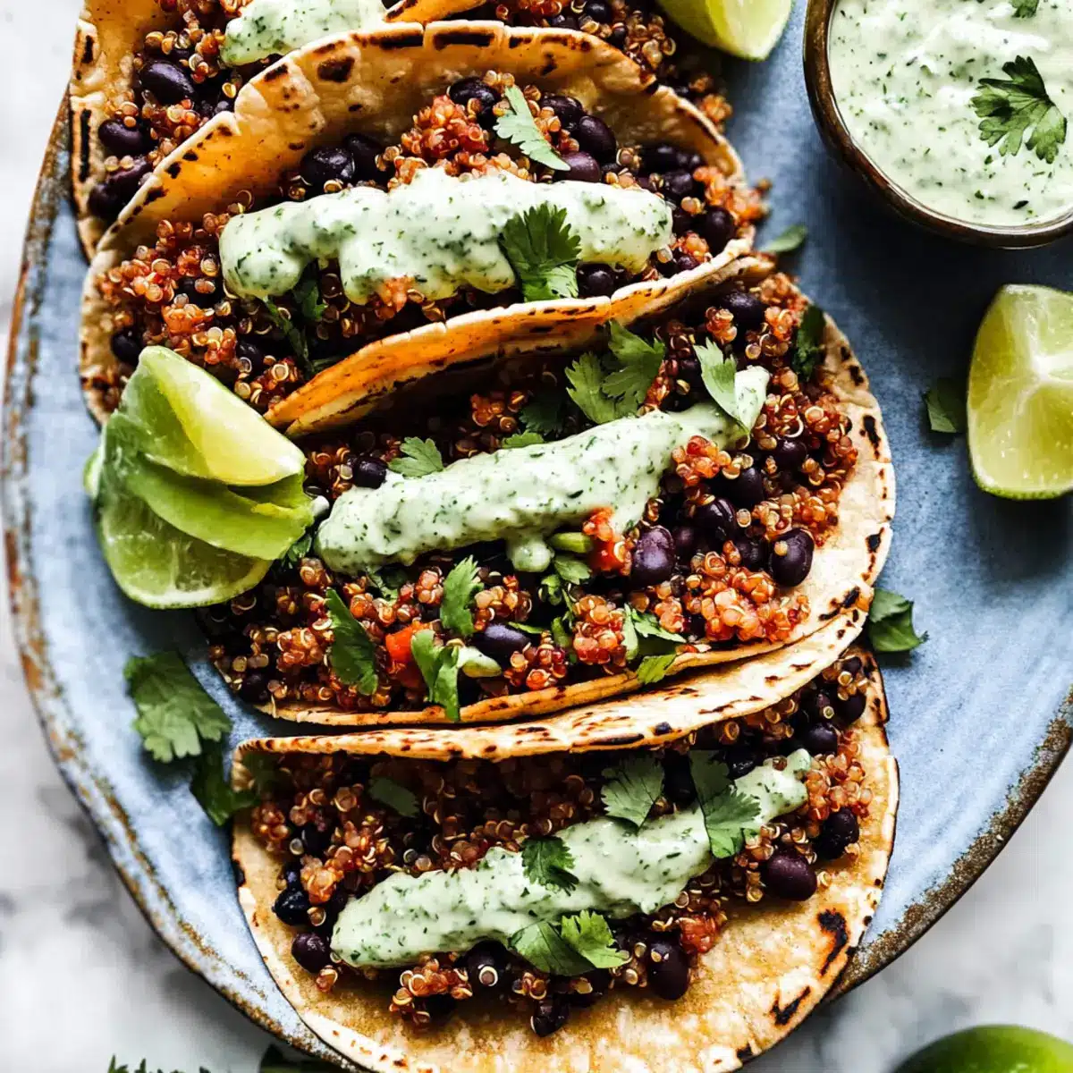 Savory Black Bean Quinoa Tacos with Zesty Lime Crema