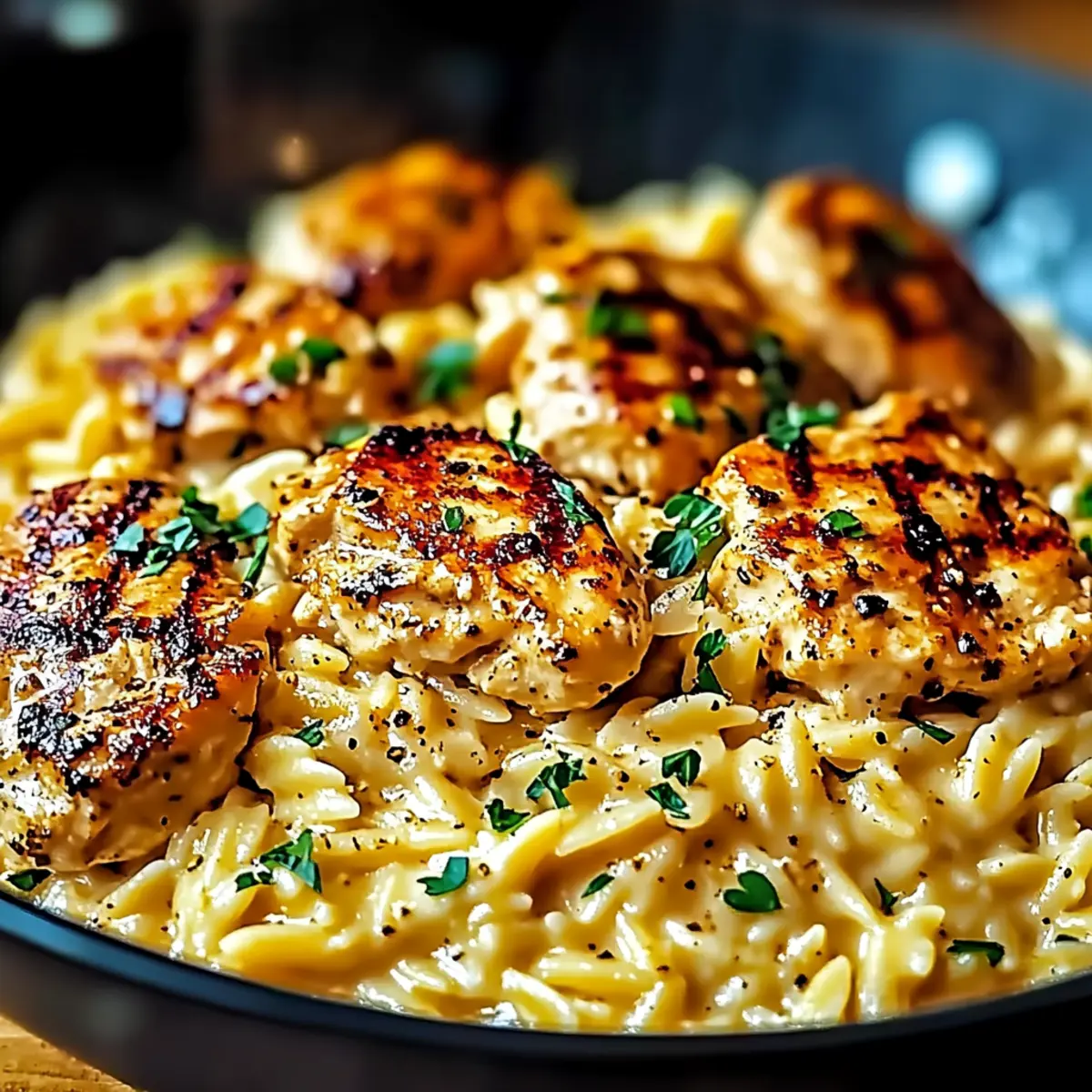 - Spoon the Cajun Chicken Alfredo Orzo into bowls and garnish with chopped fresh parsley before serving.
