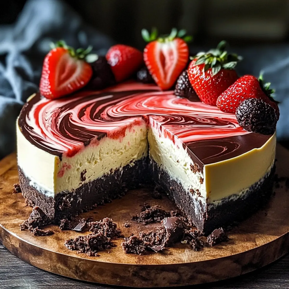 Decadent Chocolate Strawberry Swirl Cheesecake to Swoon Over