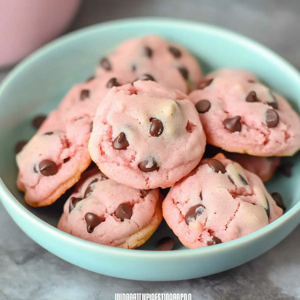Sweet and Chewy Strawberry Cake Mix Cookies with Chocolate Chips