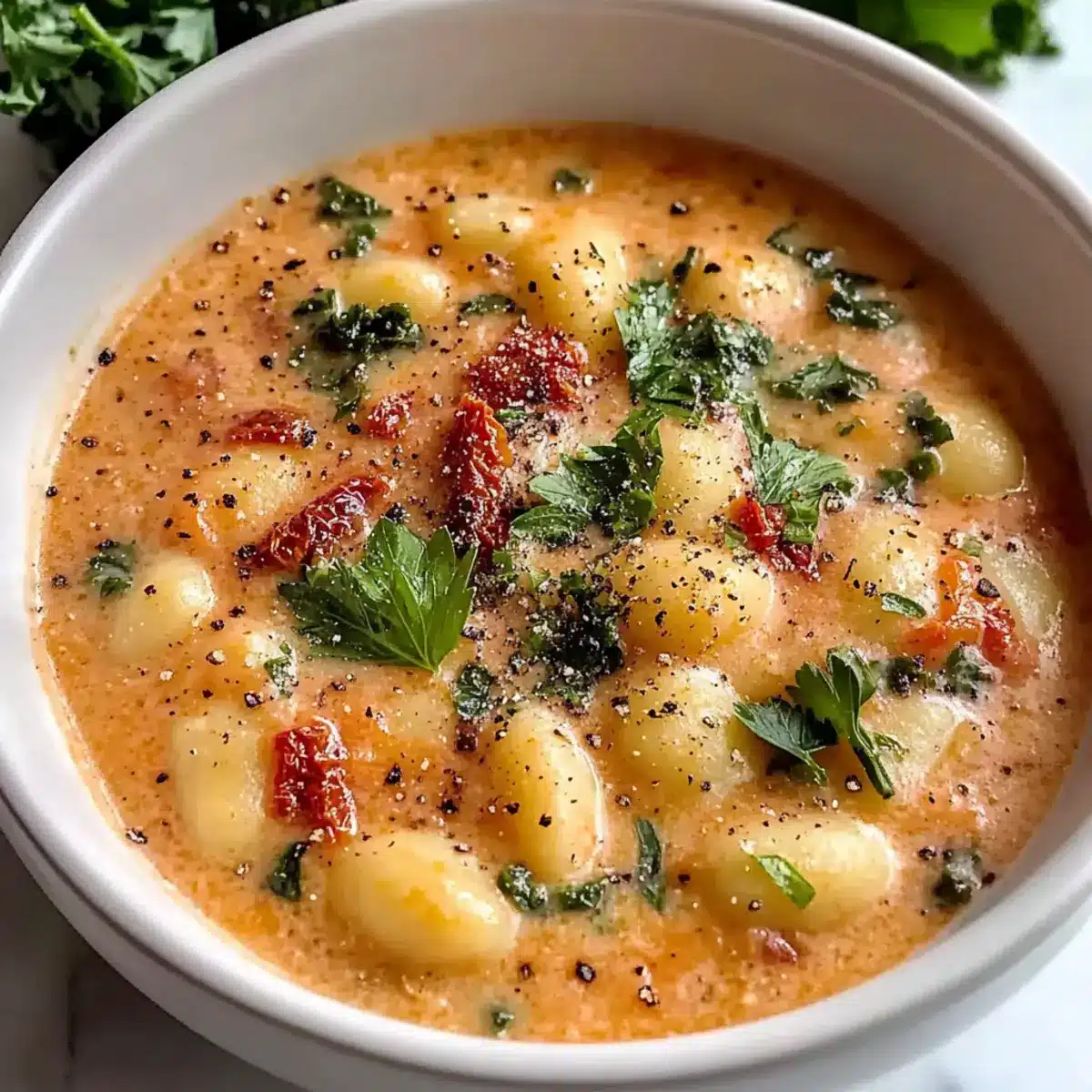 Creamy Mouthwatering Sun Dried Tomato Gnocchi Soup Recipe