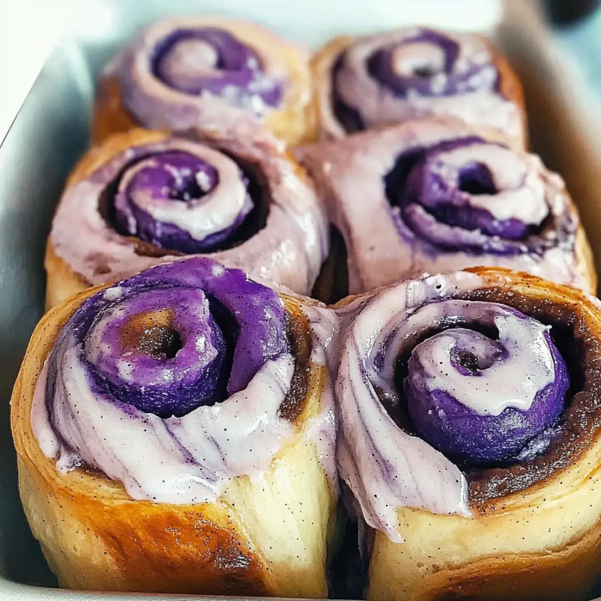 Reheating: To reheat baked Easy Ube Cinnamon Rolls, pop them in a preheated oven at 350°F for about 10 minutes or until warmed through; frost them afterward for a delicious treat!