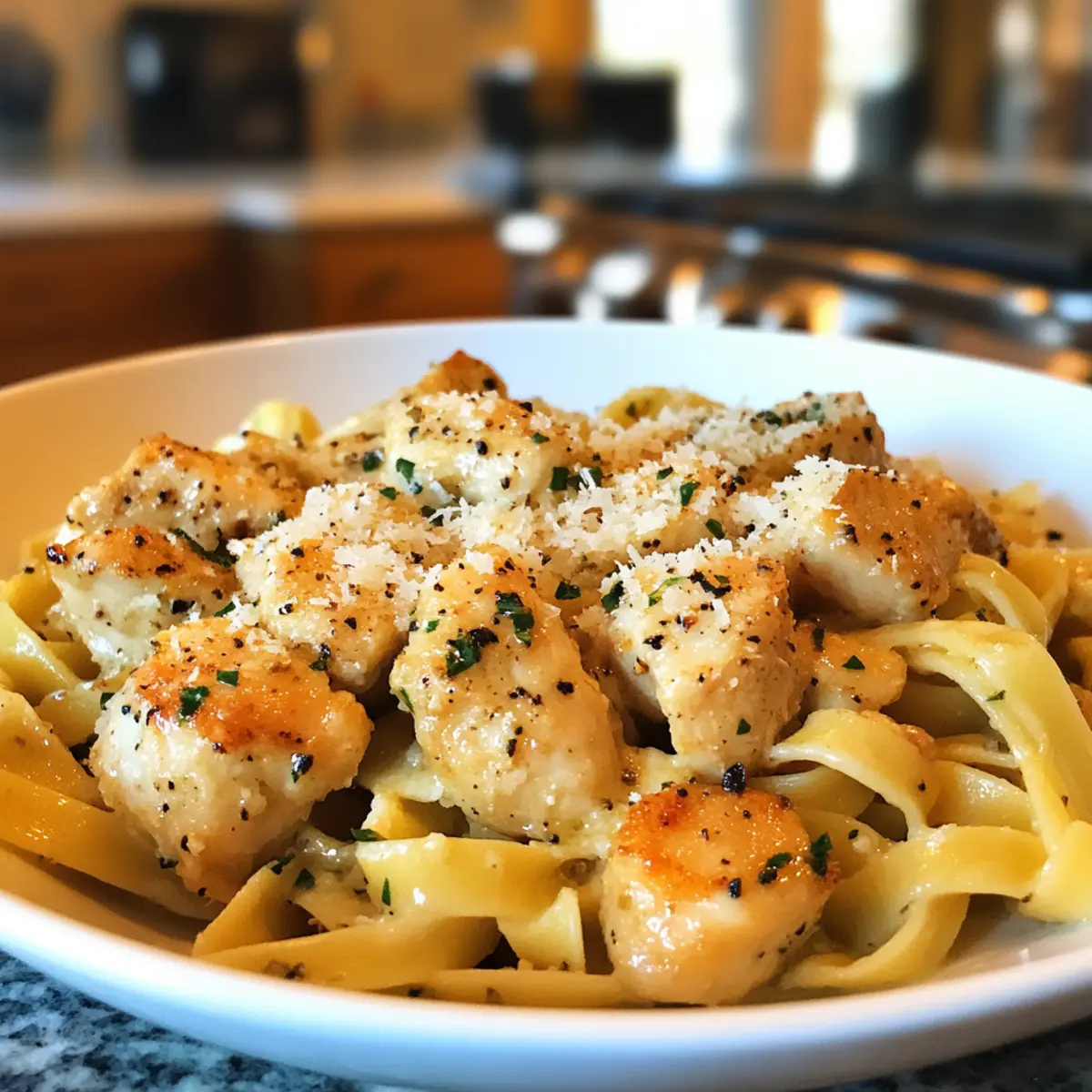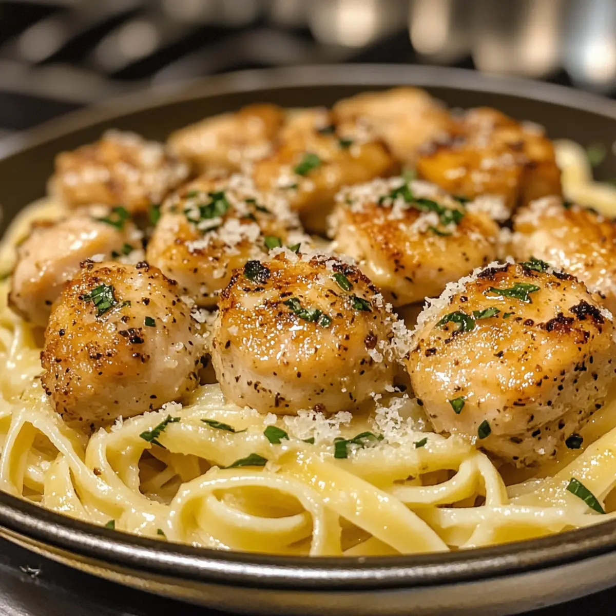 Savory Garlic Butter Chicken Bites with Creamy Parmesan Pasta