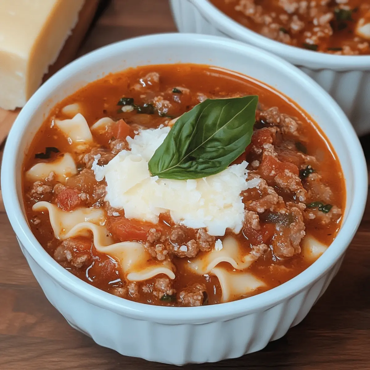 Once the cooking time is up and the noodles are tender, stir in the freshly grated Parmesan cheese. Allow the cheese to melt into the warm soup, enriching it with creamy goodness. This final touch marries the flavors perfectly, transforming your Healthy Crockpot Lasagna Soup into a rich, savory delight.