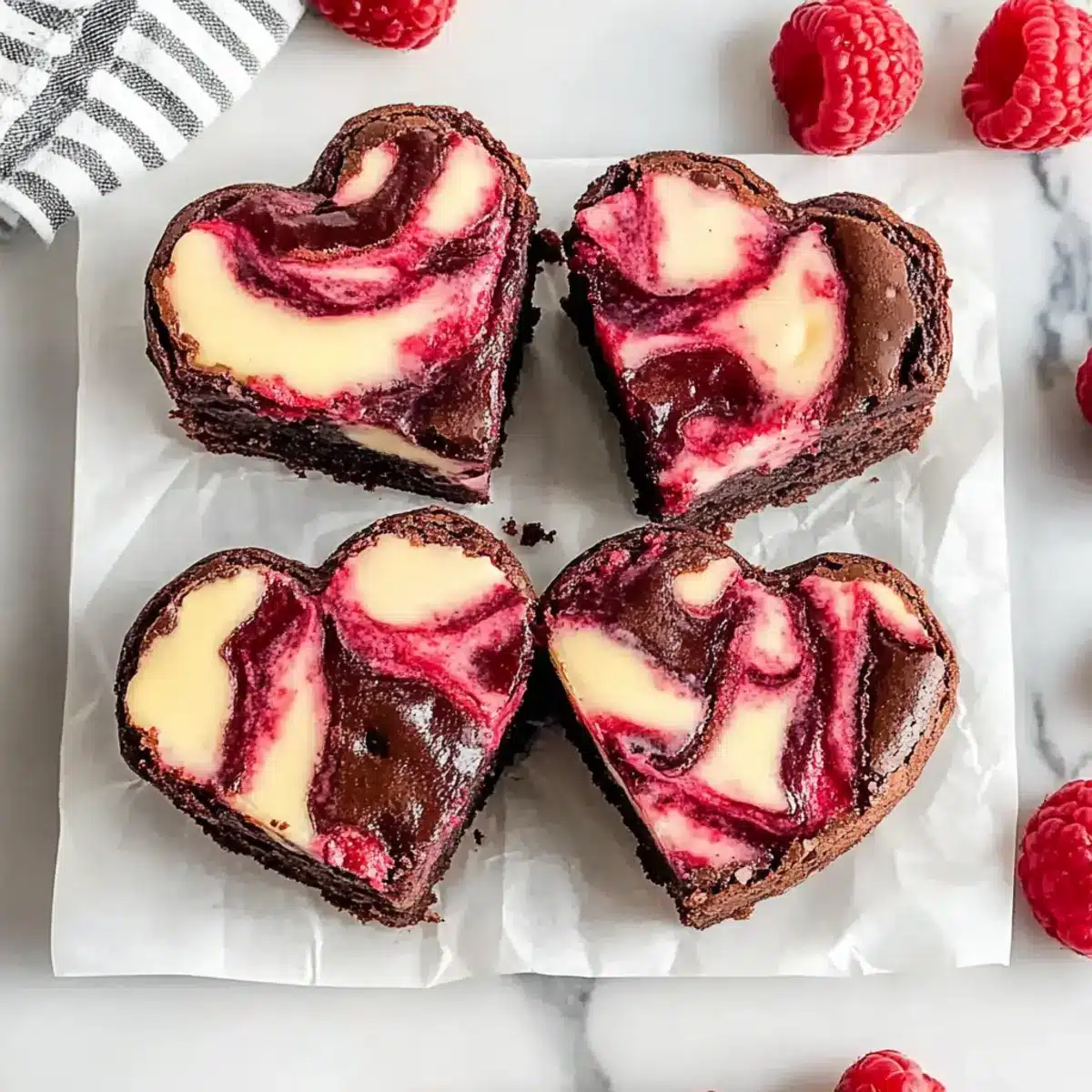 Heavenly Heart Shaped Brownies with Raspberry Swirl Delight