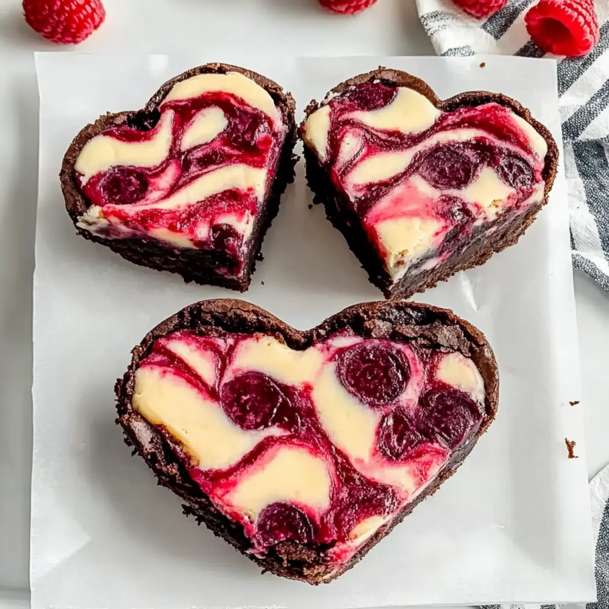 These Heart Shaped Brownies with Cheesecake and Raspberry Swirl are perfect for busy home cooks looking to save time without sacrificing flavor! You can prepare the raspberry sauce up to 3 days in advance, storing it in an airtight container in the refrigerator to keep it fresh and vibrant. Additionally, the brownie batter can be mixed and refrigerated for up to 24 hours before baking—just ensure to cover it tightly to prevent it from drying out. When you’re ready to enjoy, simply bake the brownies as directed and chill them before cutting into heart shapes. This way, you’ll have beautifully layered treats that will wow your loved ones with minimal last-minute effort!