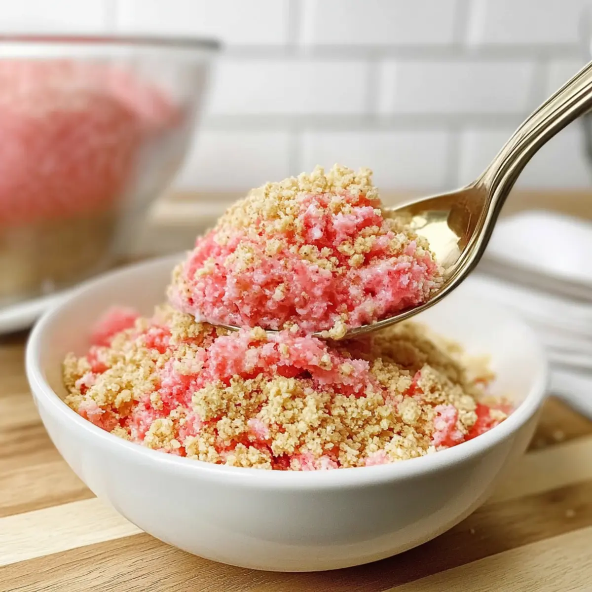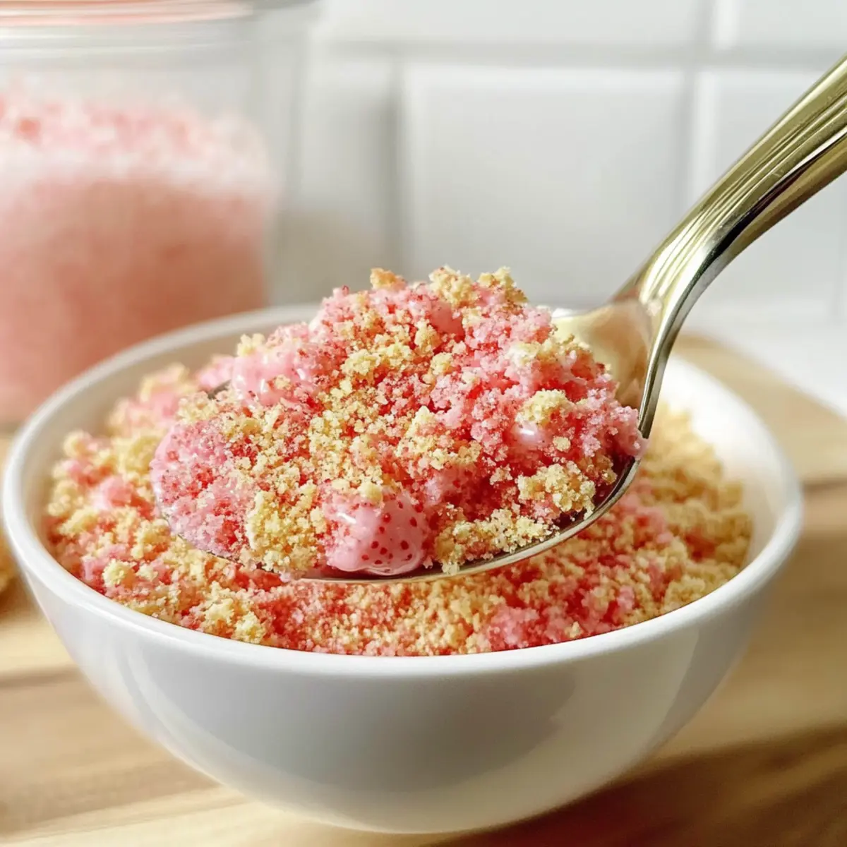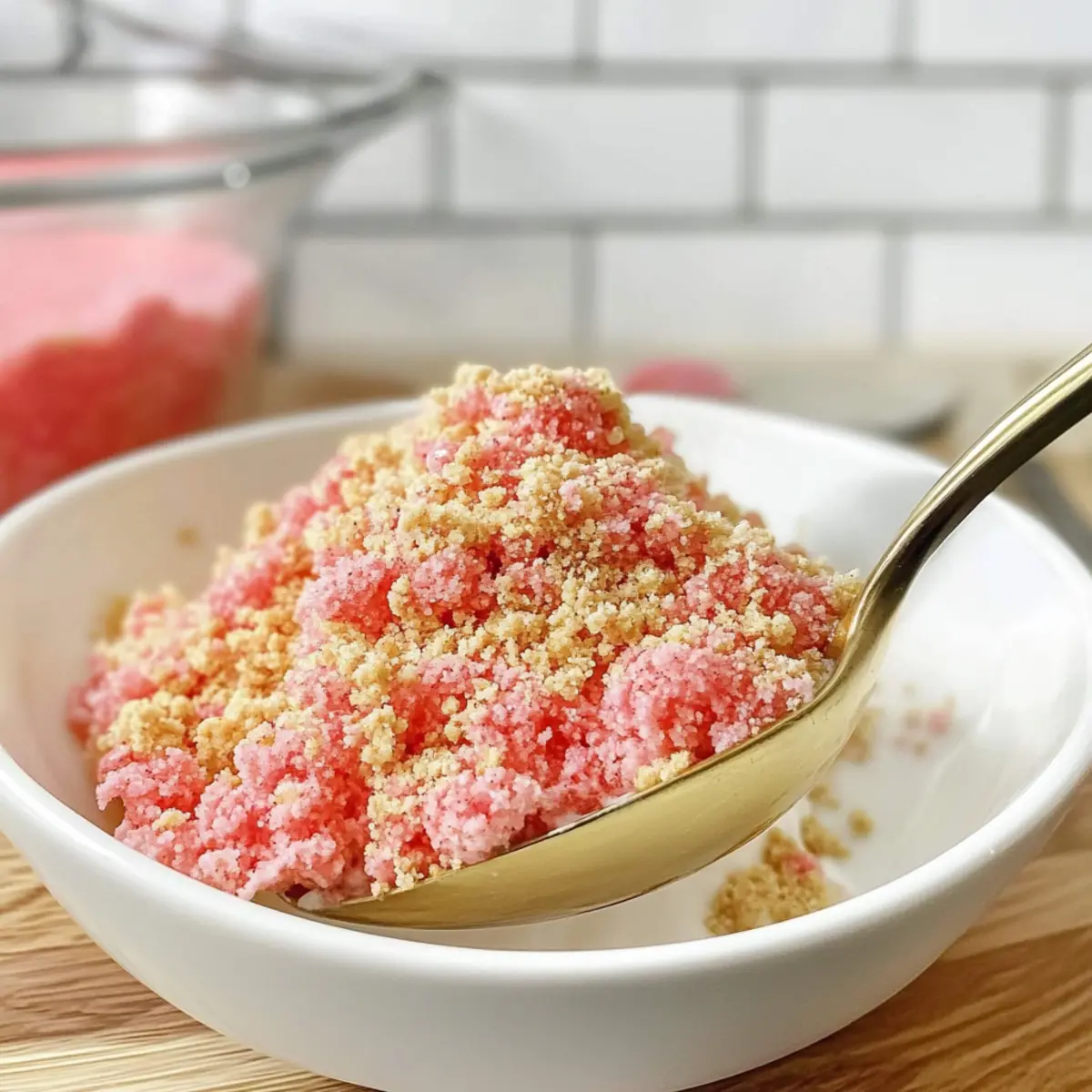 Get ready to elevate your desserts with this delightful no bake strawberry crunch topping!