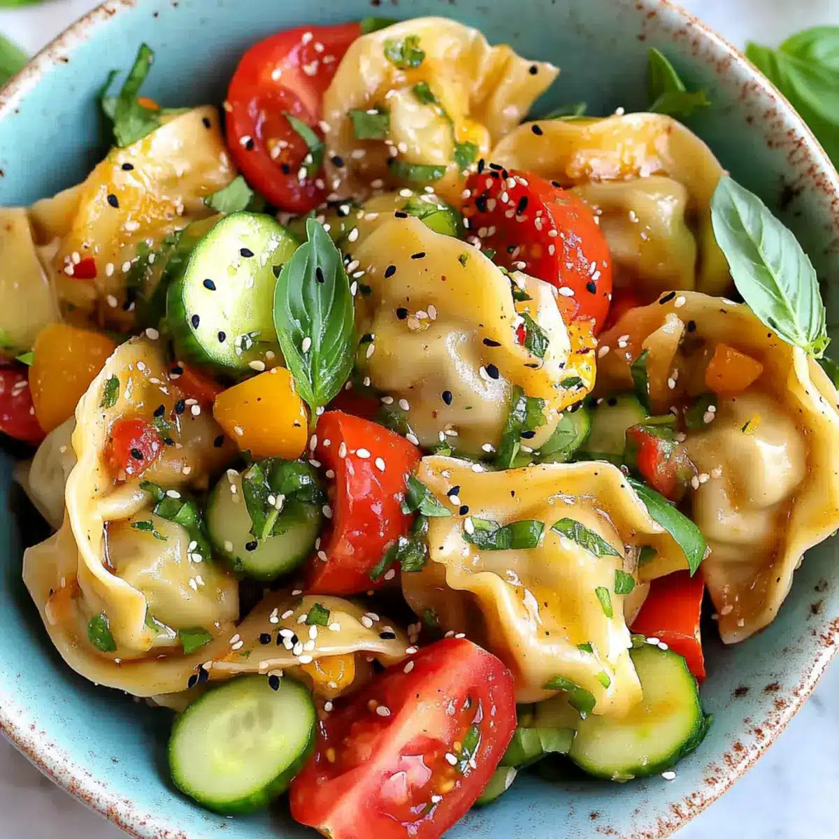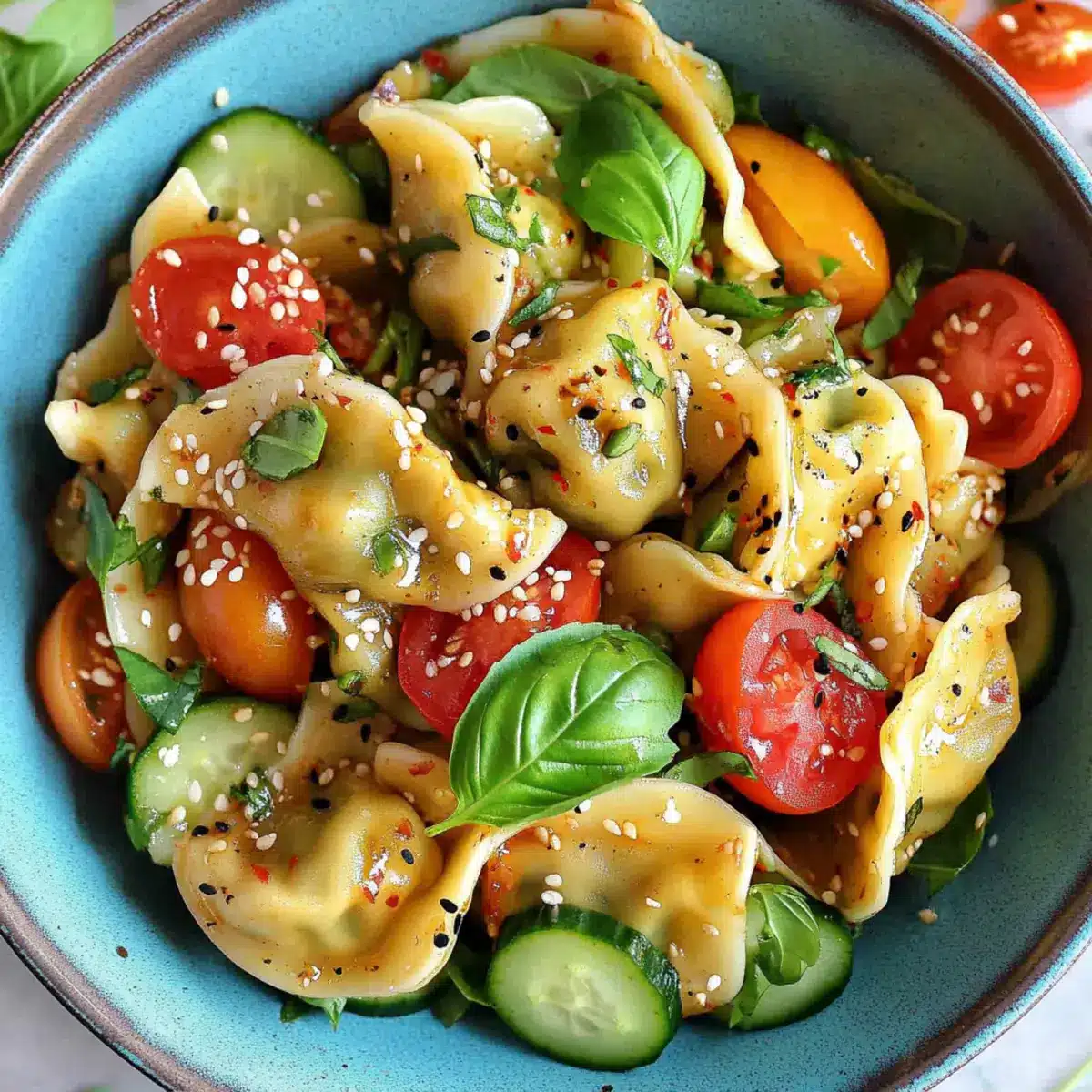 To elevate your Potsticker Salad, tear fresh basil leaves and scatter them over the top for a fragrant finish. For an extra crunch, generously sprinkle toasted sesame seeds or crispy fried onions. Serve the salad either at room temperature or chilled — the ideal way to highlight the contrast between the crispy dumplings and the juicy, fresh veggies!