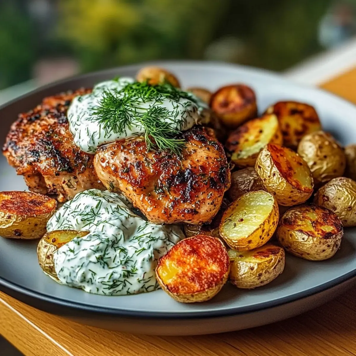 As I stood in my kitchen, the fragrant aroma of garlic and spices wafted through the air, taking me straight to a sun-drenched Mediterranean seaside. Today, I’m thrilled to share my Spicy Yogurt Marinated Chicken with Dill Feta Cream & Crispy Baby Potatoes—a dish that perfectly marries warmth and zest. This vibrant meal not only satisfies your taste buds with its explosive flavors but also embraces the comforting essence of home-cooked goodness. With minimal prep and the ability to impress anyone at your dinner table, this recipe will surely become your go-to weeknight favorite. Are you ready to spice up your culinary repertoire and dive into this delightful creation?