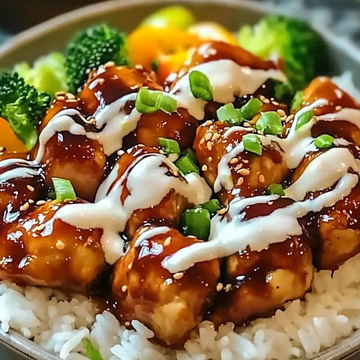 - Serve hot and enjoy your Sticky Chicken Rice Bowls!